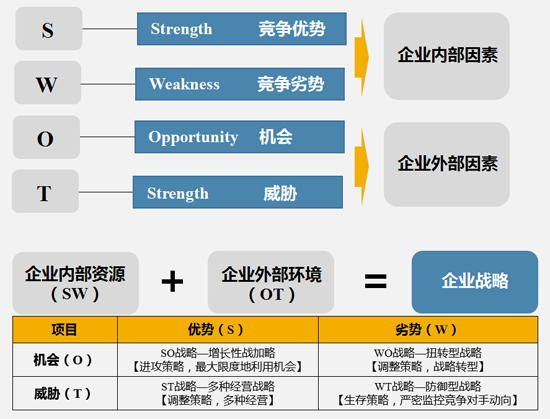 SWOT分析法又稱為態(tài)勢分析法或優(yōu)劣勢分析法。用來確定企業(yè)自身的競爭優(yōu)勢(strength)、競爭劣勢(weakness)、機會(opportunity)和威脅(threat),從而將公司的戰(zhàn)略與公司內(nèi)部資源、外部環(huán)境有機地結(jié)合起來。主要目的是可以對研究對象所處的情景進行全面、系統(tǒng)、準確的研究,從而根據(jù)研究結(jié)果制定相應(yīng)的發(fā)展戰(zhàn)略、計劃以及對策等。