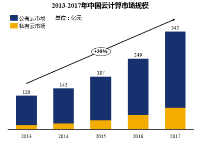 國家“十二五”、“十三五”規(guī)劃都明確提出將云計算作為未來科技發(fā)展的重要領(lǐng)域,近幾年支持云計算發(fā)展的相關(guān)政策密集出臺。2017年4月,工信部發(fā)布《云計算發(fā)展三年行動計劃(2017-2019)》,提出到2019年我國云計算產(chǎn)業(yè)規(guī)模達到4300億元,云計算服務(wù)能力達到國際新進水平,云計算在能源產(chǎn)業(yè)應(yīng)用水平也顯著提高,涌現(xiàn)出大量向智慧能源進軍和轉(zhuǎn)型的企業(yè)。2017年末中國云計算市場規(guī)模約345億元,此外,各級部門明確鼓勵新能源、油氣化等企業(yè)將傳統(tǒng)能源產(chǎn)業(yè)與云計算、大數(shù)據(jù)等先進技術(shù)相融合,意味未來幾年內(nèi),云計算在能源領(lǐng)域?qū)蟹浅4蟮陌l(fā)展空間。