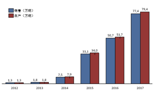 2012-2017年中國(guó)新能源汽車產(chǎn)銷量