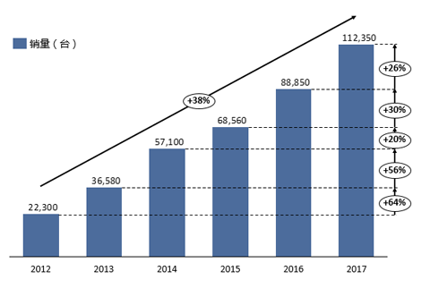 2、2012-2017年中國(guó)工業(yè)機(jī)器人銷(xiāo)量分析