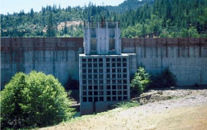 ④壩式進(jìn)水口:位于混凝土壩或漿砌石壩(如重力壩、拱壩、大頭壩)靠近上游部分的壩體內(nèi),成為壩體的一部分,后接壩身孔道或管道。