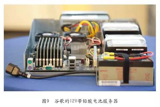 但就今天而言,消費(fèi)類電子行業(yè)在大量采用的低成本鋰電池有可能會(huì)給傳統(tǒng)UPS帶來(lái)技術(shù)革新,或者至少加速傳統(tǒng)UPS改進(jìn)的步伐,如前面介紹的手機(jī)電池和筆記本電腦電池就是一些很好的例子。我們知道即便離開了電網(wǎng),手機(jī)或者筆記本電腦都可以持續(xù)的工作,直到下一次充電。類似數(shù)據(jù)中心的UPS在掉電情況下能持續(xù)給服務(wù)器供電,直到柴發(fā)啟動(dòng)給數(shù)據(jù)中心持續(xù)供電。因此按照這個(gè)思路,如果我們也給IT設(shè)備像手機(jī)或者筆記本電腦一樣安裝上鋰電池,短時(shí)間停電仍可以像手機(jī)一樣繼續(xù)通話上網(wǎng),像筆記本電腦一樣繼續(xù)可以工作辦公,長(zhǎng)時(shí)間停電則靠柴油發(fā)電機(jī)來(lái)保障續(xù)供電,可以保障業(yè)務(wù)的持續(xù)運(yùn)行,那么我們?yōu)槭裁催需要傳統(tǒng)的UPS呢?谷歌12V帶鉛酸電池的服務(wù)器如圖9所示。