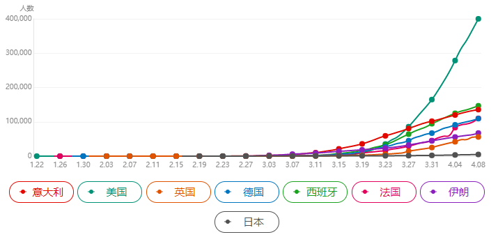 截至4月8日全球主要國(guó)家新冠肺炎感染人數(shù)