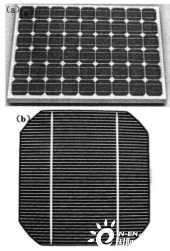 圖3.(a)單晶硅太陽能電池,(b)多晶硅太陽能電池