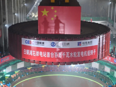 近日,位于四川省寧南縣和云南省巧家縣境內(nèi)的白鶴灘水電站正在上演歷史性的一幕,工人們將全球最大首臺(tái)單機(jī)容量100萬千瓦機(jī)組轉(zhuǎn)子順利調(diào)入右岸電站機(jī)坑中,這使得白鶴灘水電站離“成功”更近一步。上個(gè)月18日,白鶴灘水電站剛剛在左岸吊裝了一臺(tái)同樣的“巨無霸”。