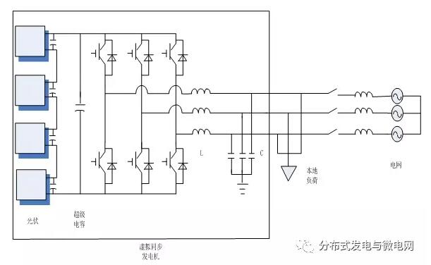 光儲(chǔ)虛擬同步機(jī)技術(shù)是采用同步電機(jī)的電機(jī)暫態(tài)方程在電力電子變流器的控制環(huán)節(jié)進(jìn)行控制,光儲(chǔ)虛擬同步機(jī)與常規(guī)的光伏相比,需要將傳統(tǒng)逆變器控制升級(jí),并增加儲(chǔ)能單元。使光伏儲(chǔ)能成為具有同步機(jī)并網(wǎng)的慣性、有功調(diào)頻、無功調(diào)壓、阻尼特征等特征的新型技術(shù)。