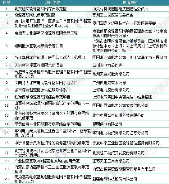 圖表1:首批“互聯(lián)網(wǎng)+”智慧能源(能源互聯(lián)網(wǎng))示范項目評選結(jié)果(1)