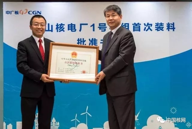 臺(tái)山核電1號(hào)機(jī)組——裝料階段。2018年4月10日獲得首次裝料批準(zhǔn)書(shū),并于當(dāng)日20時(shí)18分開(kāi)始進(jìn)行第一組燃料組件裝載操作。