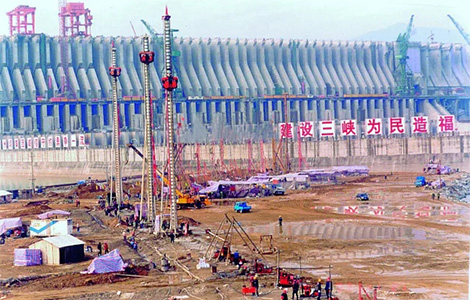 ▲建設(shè)中的三峽大壩