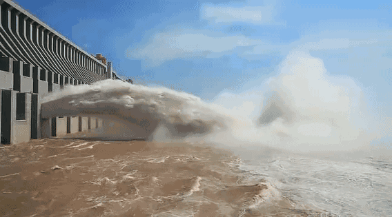 ▲泄洪中的三峽大壩
