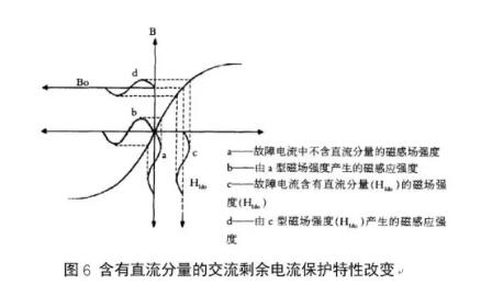 可以看到,如果交流負(fù)載發(fā)生絕緣損壞,產(chǎn)生的剩余電流不僅有交流成分,還有直流成分,如果按照慣性思維依然使用AC型漏電保護(hù)器在交流負(fù)載端進(jìn)行漏電保護(hù)顯然是不行的,不僅無法檢測直流漏電,甚至疊加的直流漏電會導(dǎo)致檢測磁芯預(yù)先磁化,導(dǎo)致脫扣值增大,破壞剩余電流保護(hù)器的原有的保護(hù)功能!