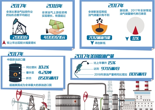 2014年油價下跌以來,為應(yīng)對低油價,全球主要石油公司普遍采取向核心業(yè)務(wù)聚焦策略,大幅削減投資,作業(yè)鉆井量明顯下降。2017年隨著油價逐漸回升,全球油氣勘探走出低谷,鉆機(jī)作業(yè)量“止跌回升”。統(tǒng)計顯示,去年全球從事油氣鉆探作業(yè)的鉆機(jī)總數(shù)平均超過2000臺,較上年出現(xiàn)較大幅度增長。2017年美國頁巖油氣并購金額達(dá)到220億美元?碧焦ぷ髁亢筒①徑痤~的增長,表明全球油氣勘探迎來了春天。業(yè)內(nèi)預(yù)計,2018年全球油氣上游投資將實現(xiàn)增長,有望超過4000億美元。