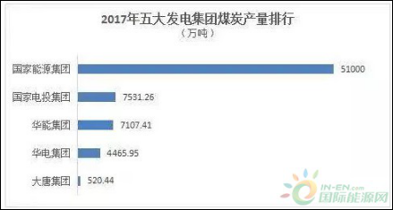 2017年,國(guó)家能源集團(tuán)全年煤炭產(chǎn)量為5.1億噸,位列第一,國(guó)家電投集團(tuán)次之,為7531.26萬噸,接下來分別是華能集團(tuán)7107.41萬噸,華電集團(tuán)4465.95萬噸,大唐集團(tuán)520.44萬噸。