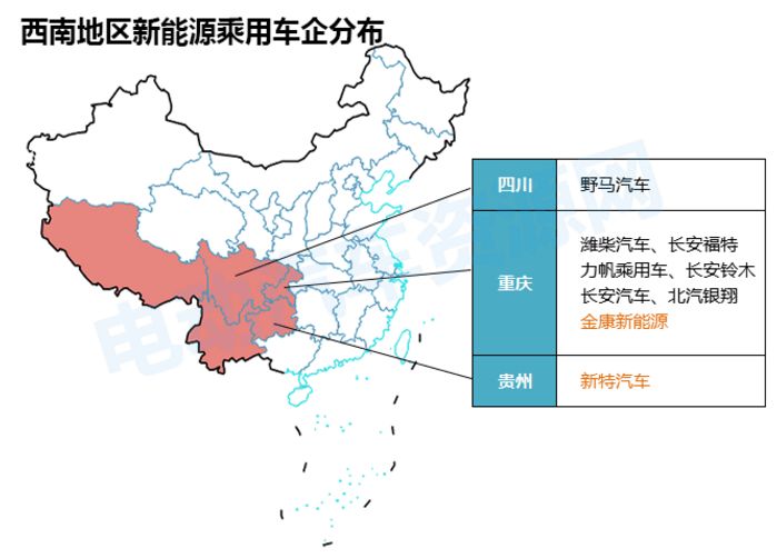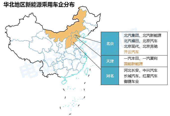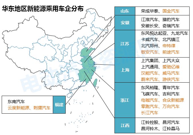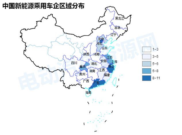 全國各省市新能源乘用車新舊造車勢力分布圖