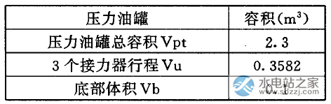 為保證調速系統(tǒng)不進氣,壓力油罐底部體積約0.1m。