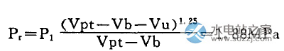 ①接力器三個行程按PV。一常數(shù)規(guī)律進行,它處于等溫規(guī)律(狀態(tài)變化非常緩慢)和具有冪指數(shù)為1.4的絕熱規(guī)律(狀態(tài)變化非常快)之間。冪指數(shù)1.25是根據大型油一氣壓力油罐的經驗得來的經驗數(shù)據。這樣三個接力器行程后的剩余壓力Pr計算為: