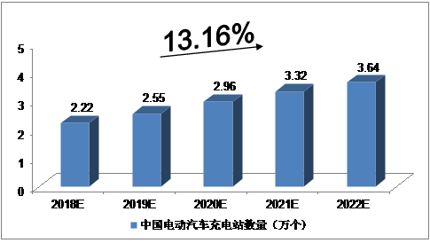 截至2017年8月底,我國(guó)電動(dòng)汽車(chē)充電站數(shù)量為17,098個(gè)。我們預(yù)計(jì),2018年中國(guó)電動(dòng)汽車(chē)充電站數(shù)量將達(dá)到2.22萬(wàn)個(gè),未來(lái)五年(2018-2022)年均復(fù)合增長(zhǎng)率約為13.16%,2022年中國(guó)電動(dòng)汽車(chē)充電站數(shù)量將達(dá)到3.64萬(wàn)個(gè)。