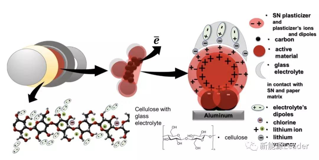 全固態(tài)電池的正極仍然主要是由過渡金屬氧化物顆粒組成,電極內(nèi)部具有復(fù)雜的孔隙結(jié)構(gòu),在傳統(tǒng)的鋰離子電池中電解液能夠“滲”入到這些微孔結(jié)構(gòu)之中,解決電極內(nèi)部顆粒Li+傳導(dǎo)的問題,但是固態(tài)電解質(zhì)由于沒有流動性,因此無法保證與正極中的每一個顆粒都有良好的接觸,特別是在充放電過程中正極材料具有一定的體積膨脹時,這一問題將變的更加嚴(yán)重。為了解決這一問題,Goodenough采用兩種電解質(zhì)串聯(lián)的結(jié)構(gòu),其中普通的Li+-玻璃電解質(zhì)與金屬Li負(fù)極接觸,而正極一側(cè)則采用了丁二腈塑化劑SN與LiClO4作為電解質(zhì),正極一側(cè)的塑化劑電解質(zhì)不僅保證了電解質(zhì)與正極活性物質(zhì)顆粒之間的完全接觸,還因?yàn)槠渚哂幸欢ǖ膹椥砸虼吮苊饬顺浞烹娺^程中,因?yàn)檎龢O活性物質(zhì)顆粒體積膨脹造成的界面分離現(xiàn)象,在153mA/g的電路密度下(2.5-5.0V),該電池的循環(huán)壽命超過23,000次,遠(yuǎn)超普通的鋰離子電池。