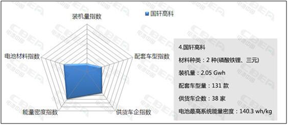 圖4:2017年裝機(jī)量排名第4的動(dòng)力電池企業(yè)國(guó)軒高科各數(shù)據(jù)情況
