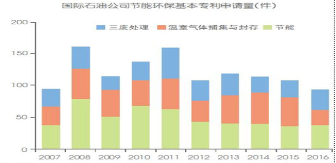 受全球氣候變暖、環(huán)境污染加劇、《巴黎協(xié)定》簽署等系列環(huán)保事件推動,國際石油公司高度重視節(jié)能減排技術的開發(fā)。2007~2016年,國際石油公司節(jié)能減排技術(節(jié)能僅包括加熱、制冷及換熱領域)基本專利申請量占比從5%提高至10%左右。從技術用途來看,節(jié)能減排相關專利主要集中在工業(yè)廢氣及汽車尾氣中SOx、NOx高效脫除,工業(yè)廢水及鉆井液的無害處理與排放,二氧化碳分離等方面。?松梨谂c殼牌公司對碳捕集與封存技術重視程度最高,年均專利申請量分別達到20件、10件。
