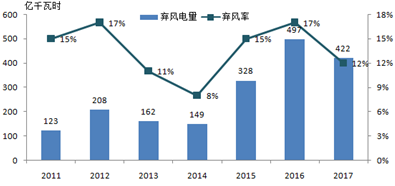 圖1 2011-2017年棄風(fēng)情況(數(shù)據(jù)來源:國(guó)家可再生能源中心)