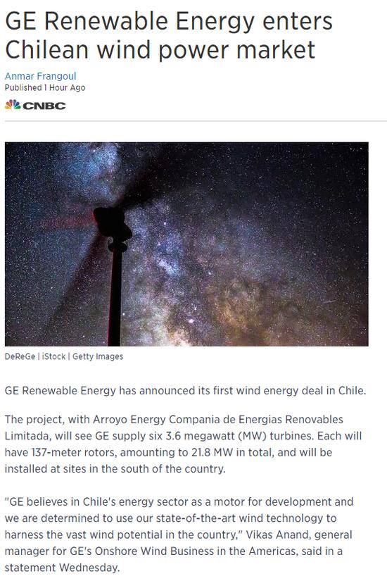 5月10號晚間,據(jù)外媒消息,GE宣布了其在智利的第一筆風電交易。