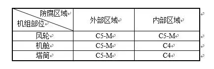 表1風(fēng)輪、機(jī)艙、塔筒防腐等級(jí)