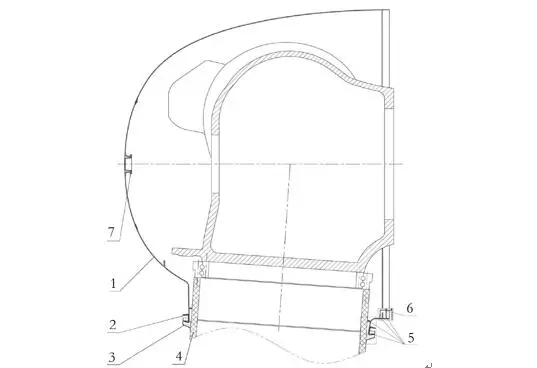 1.導(dǎo)流罩 2.導(dǎo)流罩密封環(huán) 3.葉片密封環(huán)4.葉片5.毛刷 6.機(jī)艙罩密封環(huán)7.導(dǎo)流罩換氣機(jī)構(gòu)