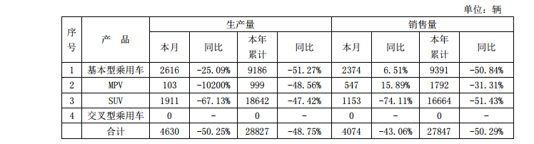 此外,海馬汽車集團(tuán)股份有限公司2018年4月份產(chǎn)品產(chǎn)銷數(shù)據(jù)快報(bào)也已經(jīng)出爐:4月份海馬汽車的產(chǎn)量和銷量均同比大幅下降,包括基本型乘用車、MPV/SUV/交叉型乘用車等,均出現(xiàn)大幅下降。