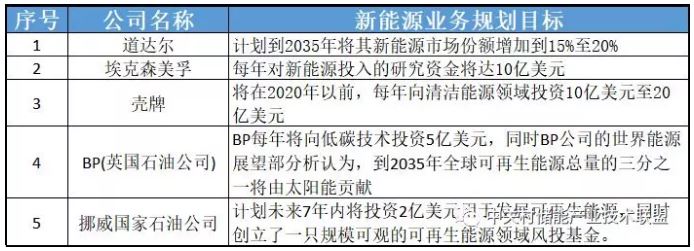 表 1:主要油氣能源公司新能源業(yè)務(wù)發(fā)展規(guī)劃