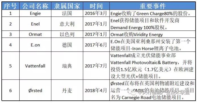從目前新進入的儲能業(yè)務(wù)公司類型來看,主要可以分為兩類:一類是以殼牌、BP為代表的國際石油、天然氣能源巨頭進入儲能市場;另一類是以E.On為代表的電力綜合能源公司進入儲能市場。