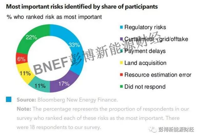 從我們對(duì)印度光伏與風(fēng)電領(lǐng)域18家獨(dú)立發(fā)電公司與融資機(jī)構(gòu)進(jìn)行的調(diào)研來看,棄電問題以及法規(guī)的變動(dòng)是目前印度可再生能源領(lǐng)域所面臨的最嚴(yán)重風(fēng)險(xiǎn)。約33%的受訪者(見圖)表示,2017年所面臨的最嚴(yán)峻的挑戰(zhàn)在于:配電公司紛紛要求就購電協(xié)議進(jìn)行重新談判,并且關(guān)稅、反傾銷稅及商品和服務(wù)稅政策不夠明朗。