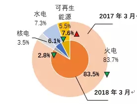 圖 2 2017及2018年3月印度發(fā)電結(jié)構(gòu)變化