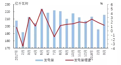 2018年3月,南非發(fā)電量為216億千瓦時,同比增長1.3%,增速比上月下滑0.6個百分點,比去年同期回落1.7個百分點。其中,Eskom公司發(fā)電量為198億千瓦時,占南非總發(fā)電量的91.8%。一季度,南非累計發(fā)電量為625億千瓦時,同比增長1.9%。