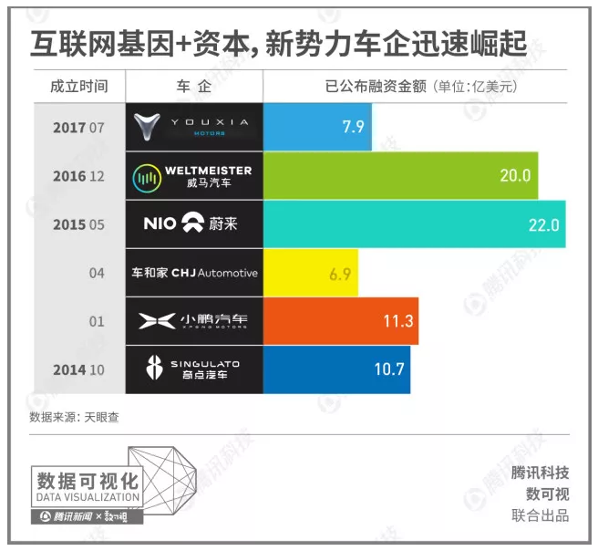 與此同時(shí),在2014年工信部向民間資本開(kāi)放電動(dòng)車(chē)生產(chǎn)資質(zhì)后,隨著2016到2017年間一大批純電動(dòng)乘用車(chē)建設(shè)項(xiàng)目集中相繼獲批,以及一輪輪相關(guān)的投融資緊鑼密鼓地進(jìn)行,一大批互聯(lián)網(wǎng)新勢(shì)力造車(chē)企業(yè)迎來(lái)爆發(fā)式發(fā)展。直到去年底,我國(guó)新勢(shì)力造車(chē)企業(yè)已經(jīng)突破60家。