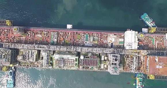 它的最大排水量可達(dá)35萬噸,比全球最大的航空母艦還要大數(shù)倍,排水量及生產(chǎn)能力均位居世界最大FPSO之列,是個名副其實的“海上巨無霸”。