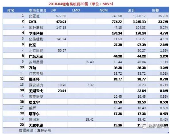 2、2018年前4個月鋰電裝機8.23GWh,同比增長212.91%
