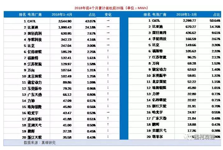 從電池廠商情況看,時隔一年,比亞迪裝機重新登頂。