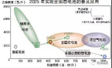 在逐步確定未來汽車發(fā)展路線的同時(shí),豐田公司也一直努力投入電池技術(shù)的研發(fā)。早在2014年豐田公司就發(fā)布了電池技術(shù)發(fā)展路線,當(dāng)時(shí)計(jì)劃到2025年實(shí)現(xiàn)全固態(tài)電池的普及應(yīng)用,能量密度達(dá)到600瓦·時(shí)/升。