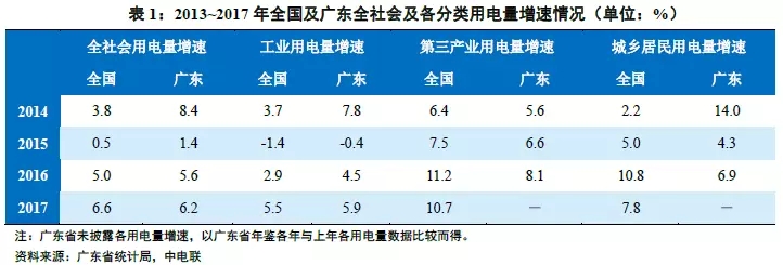 需求方面,2017年廣東省全社會(huì)用電量5,958.97億千瓦時(shí),居全國(guó)首位。受益于經(jīng)濟(jì)的快速發(fā)展,廣東省用電量增速處于全國(guó)中高水平,工業(yè)用電對(duì)廣東用電增速貢獻(xiàn)明顯,短期內(nèi)仍將維持較快增長(zhǎng)。