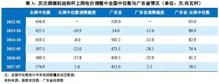 廣東省在歷次上網(wǎng)電價(jià)調(diào)整后均仍列全國(guó)最高,但與全國(guó)中位數(shù)水平差值不斷壓縮。