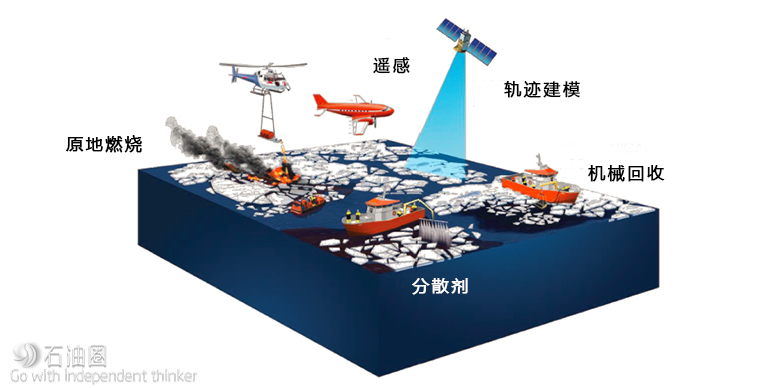 在推動(dòng)泄油應(yīng)急與控制技術(shù)上,油氣行業(yè)組織了一項(xiàng)著名的項(xiàng)目:北極泄油應(yīng)急技術(shù)聯(lián)合行業(yè)項(xiàng)目(JIP)。JIP于2012年在國(guó)際油氣生產(chǎn)商協(xié)會(huì)(IOGP)的支持下啟動(dòng),匯集了九家國(guó)際油氣公司(英國(guó)石油公司,雪佛龍公司,康菲石油公司,埃尼公司,?松梨诠,北卡斯比安運(yùn)營(yíng)公司,殼牌公司,挪威國(guó)家石油公司與道達(dá)爾),旨在加強(qiáng)北極地區(qū)的泄油應(yīng)急能力。重點(diǎn)主要集中在六個(gè)關(guān)鍵領(lǐng)域:分散劑、原地燃燒(ISB)、機(jī)械回收、環(huán)境影響、軌跡建模以及遙感。