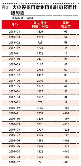 從月度數(shù)據(jù)來看,火電設(shè)備利用小時數(shù)從2017年2月開始見底回升,已經(jīng)連續(xù)14個月保持同比增長態(tài)勢。尤其是進入2018年以后,呈現(xiàn)加速增長態(tài)勢,2月、3月、4月,火電設(shè)備利用小時數(shù)同比分別增加51小時、52小時、69小時,呈現(xiàn)向好態(tài)勢。