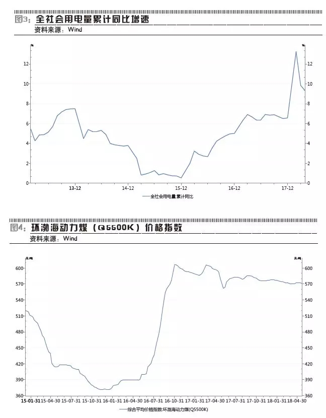 不過,歷經(jīng)兩年調(diào)整之后,積極因素開始出現(xiàn):火電利用小時數(shù)從2017年年初開始見底回升,已經(jīng)連續(xù)14個月保持增長態(tài)勢;煤電價格自2017年3月創(chuàng)下本輪新高之后開始回落,尤其2018年一季度同比回落明顯。