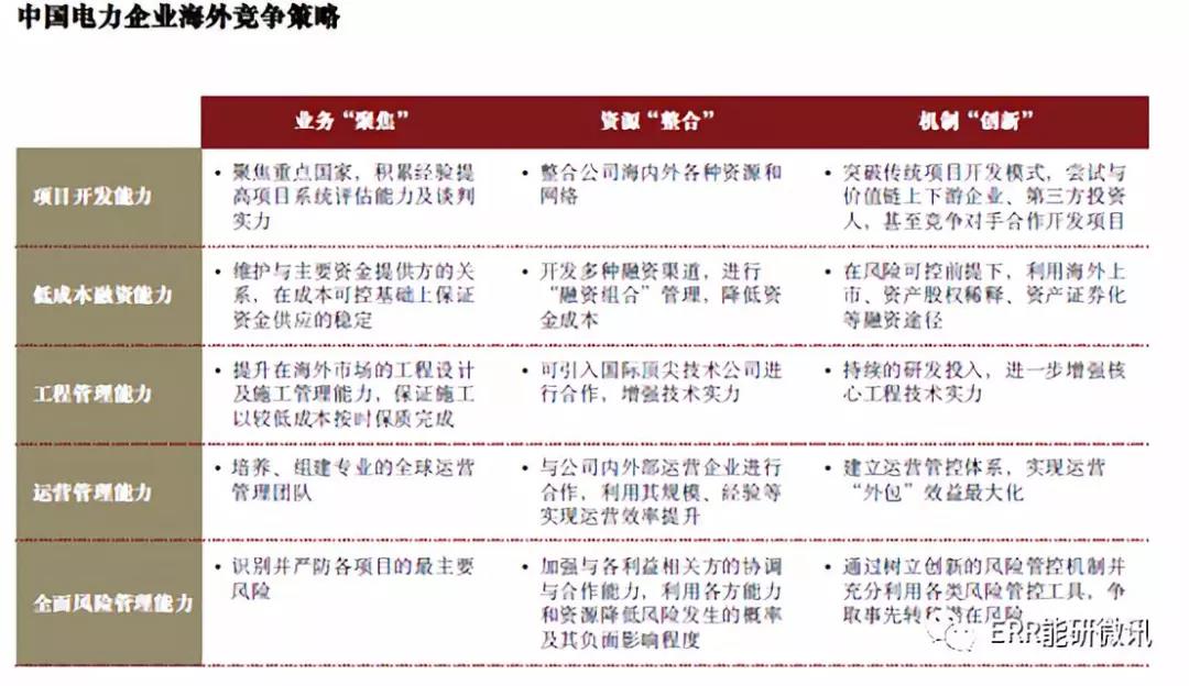 近日,普華永道思略特發(fā)布《中國電力能源產業(yè)轉型系列報告—海外電力投資機遇》:近年來中國企業(yè)在海外電力市場的投資增長迅速,投資方向也逐漸趨向于可再生清潔能源領域和發(fā)達國家市場。在海外市場日益激烈的競爭環(huán)境下,國內企業(yè)的海外電力投資面臨著缺乏戰(zhàn)略引領、風險和運營管理能源不足、融資渠道單一等挑戰(zhàn)。思略特認為,中國企業(yè)應采取“聚焦”、“整合”、“創(chuàng)新”的思路,增強自生在項目開發(fā)、融資、建設、管理、運營管理以及風險管理這五個核心能力方面的建設,推動企業(yè)向國際化、專業(yè)化能源服務公司轉型。