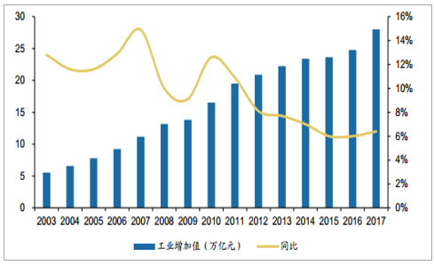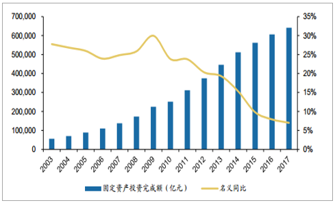低壓電器應用范圍極為廣泛,從工業(yè)制造到民用住宅,低壓電器均存在很高的使用量,因此各行業(yè)的投資均會對低壓電器形成需求。 2003年到2017年全國固定資產投資復合增速達到19.09%, 2017年投資額64.12萬億元,雖然受到經濟轉型等因素的影響近些年增速不斷下降,但增速依然達到7%。根據國家“十三五”規(guī)劃的目標,我國近幾年經濟增速將保持在年均6.5%以上,固定資產投資增速平穩(wěn)將為低壓電器提供穩(wěn)定的市場需求。