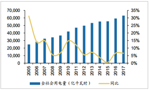 低壓電器在電力設施建設中有十分重要的作用,涉及電能的控制、配送等多個方面。電力建設方面的需求主要來自于兩個方面:一方面是新增需求,另一方面是現(xiàn)有設備的更新需求。按照經驗配套比計算,每增加1萬千瓦發(fā)電容量,約需要6萬件低壓電器元件相配套。 2017年我國新增6000萬千瓦以上發(fā)電設備容量1.31億千瓦,裝機總量達到17.77億千瓦。 2017全社會用電量為6.3萬億千瓦時,同比增速為6.55%,近十年來我國全社會用電量復合增速為6.87%,隨著經濟環(huán)境的復蘇,預計未來這個增速可以保持。穩(wěn)定的用電增長將帶來相應的裝機需求,為低壓電器帶來增量市場。更新需求方面,根據產品壽命、安全性、穩(wěn)定性以及部分行業(yè)的特定要求等因素的不同,低壓電器產品的更新周期為五至八年。以2017年末的裝機容量來算,我國目前約有106億件在線低壓電器,在役產品的更新需求將帶來可觀持續(xù)的市場。此外,根據能源局《配網行動計劃》, 2015年-2020年配網建設和改造投資將不低于2萬億元,配網建設同樣帶來巨大市場空間。