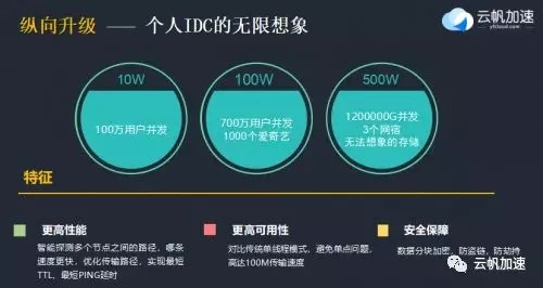 2018年云帆加速升級(jí)共享CDN為超級(jí)CDN,將個(gè)人IDC納入共享計(jì)劃之中!皞(gè)人IDC”是云帆加速CEO王羲桀在2018亞太CDN峰會(huì)上首次提出的概念,是指互聯(lián)網(wǎng)上閑置的帶寬(家庭網(wǎng)關(guān)/OTT盒子等)和企業(yè)帶寬。如家庭用戶(hù)的 帶寬,使用者白天多在上班,夜晚多在睡覺(jué),平均使用率低于 20% ;又如企業(yè)白天上班時(shí)段網(wǎng)絡(luò)應(yīng)用飽和,夜晚則空閑,而互聯(lián)網(wǎng)場(chǎng)景夜晚是網(wǎng)絡(luò)使用高峰。“超級(jí)CDN”就是以共享經(jīng)濟(jì)為商業(yè)模型,使用“個(gè)人IDC”組建的CDN網(wǎng)絡(luò),通過(guò)大數(shù)據(jù)/云計(jì)算的高效智能調(diào)度,實(shí)現(xiàn)高性能、低成本的網(wǎng)絡(luò)傳輸。這與之前共享CDN的區(qū)別在于其流量調(diào)度規(guī)劃的不同。