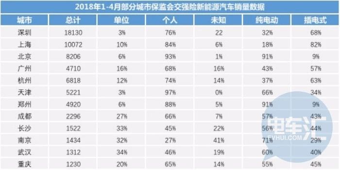 從2018年1-4月保監(jiān)會數(shù)據(jù)來看,武漢在一線、新一線城市中的新能源推廣量仍然靠后,中部城市除鄭州外,武漢、長沙、重慶新能源體量仍然較低。不僅如此,武漢新能源汽車推廣中單位購買車輛占據(jù)較大比例,這也意味著中部地區(qū)以武漢為首的新一線城市市場有待進一步開拓。