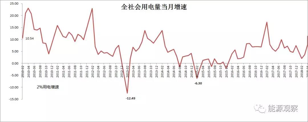 這是常規(guī)例行的數(shù)據(jù)通報,數(shù)字后面的變化非常重要。5月當月社會用電量突破10%,實現(xiàn)兩位數(shù)增長。剔除春節(jié)因素影響,這是2014年以來,單月社會用電量增長首次突破兩位數(shù)。